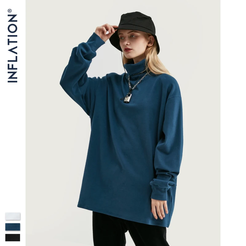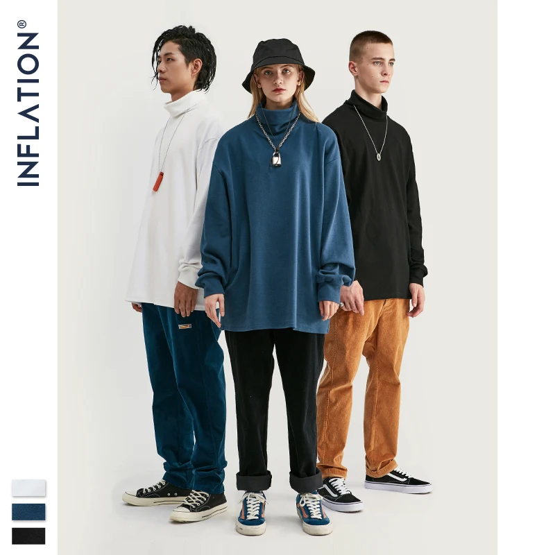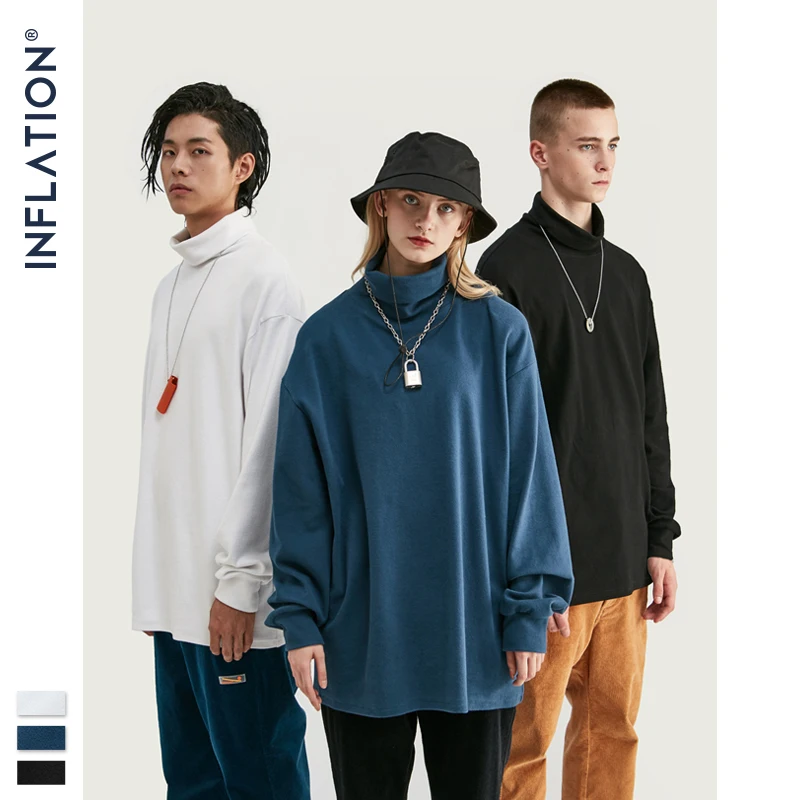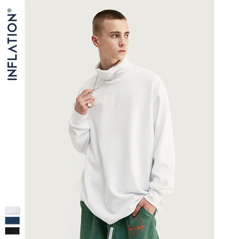Special Offer INFLATIE Mannen Lange Mouw T shirt Streetwear Hoge Kraag Retro T shirt Trui Mannen Hip Hop Zwart Wit Mannen T shirt 91511W Discount 50% Today!