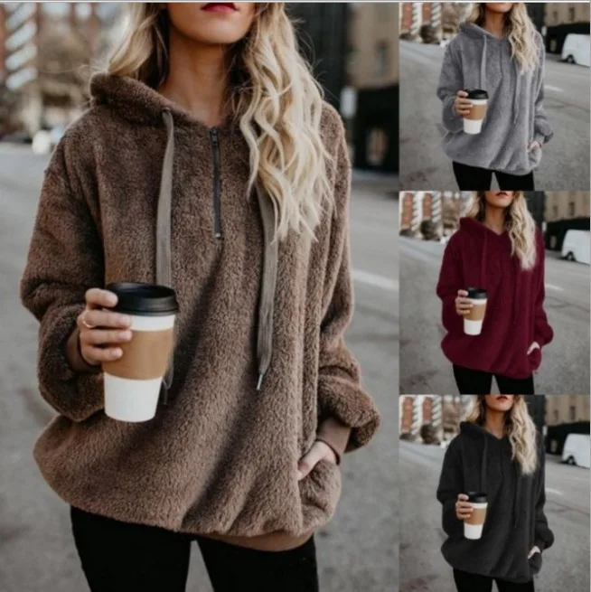 Special Offer Winter Warm Casual Dubbele Fuzzy 1 4 Zip Sweatshirt Faux Fleece Pocket Lange Mouwen Oversize Sherpa Trui Hoodies Jas Uitloper Discount 0% Today!