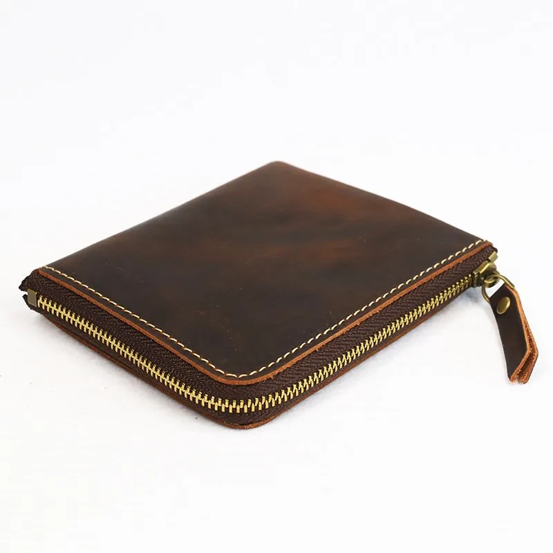 Special Offer Echt Lederen Heren Portemonnee Crazy Horse Handgemaakte Mannelijke Portemonnee Korte Vintage Rits Kleine Dunne Portefeuilles Met Broekzak Kaarthouder Discount 31% Today!