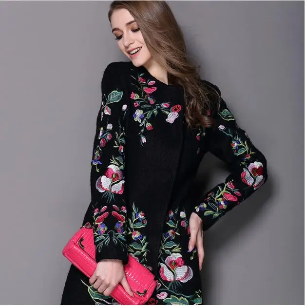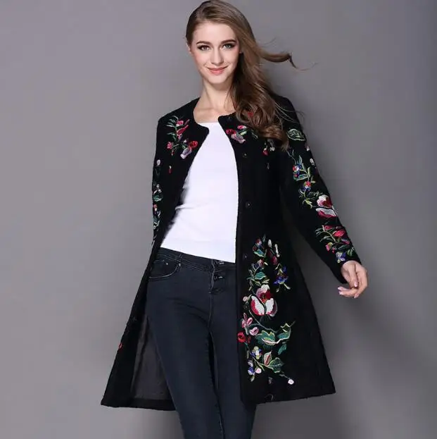 Special Offer 2017 vrouwen winter jas geborduurde hals lange mouwen O knop vrouwelijke jas elegante mode jas Discount 36% Today!