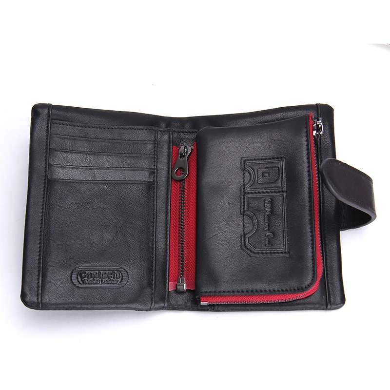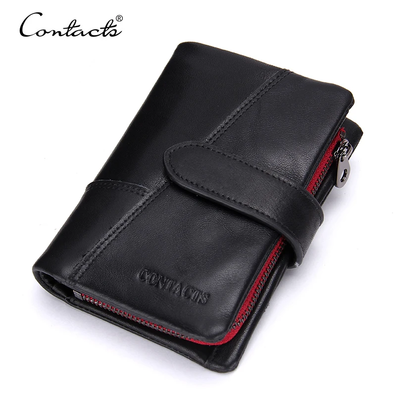 Special Offer CONTACT S Zakelijke Stijl Mode Echt Leer Mannen Portefeuilles Hasp Zip Mannen Portemonnee Met Broekzak Mannelijke Kaarthouder Korte portemonnee Discount 37% Today!