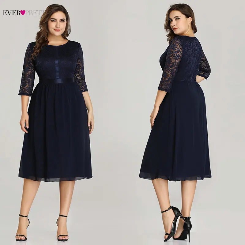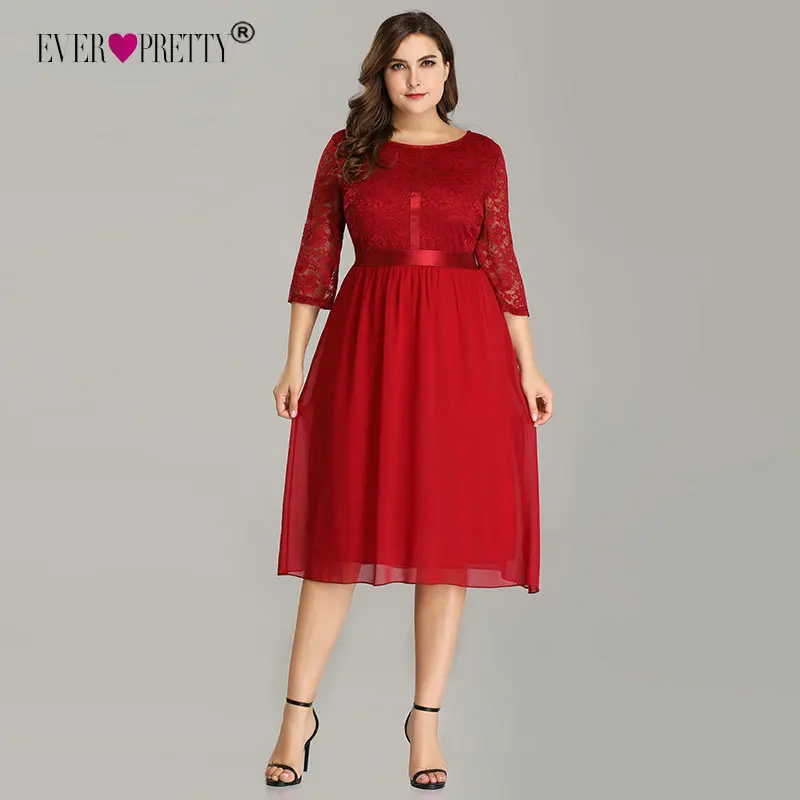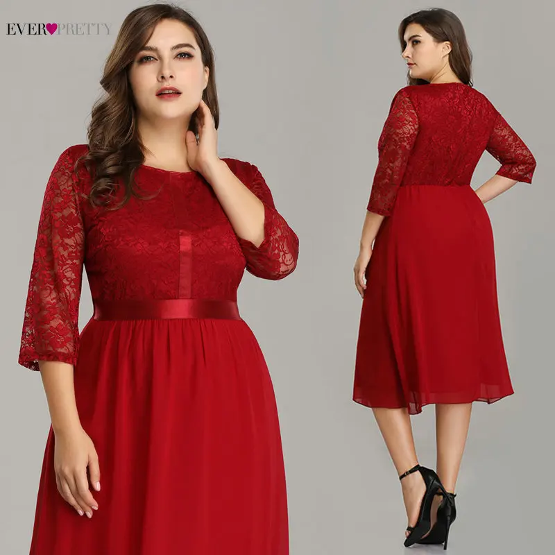 Special Offer Ooit Pretty Bourgondië Plus Size Cocktail Jurken EZ07641 Vrouwen Elegante Half Sleeve Kant A lijn Knie Lengte Elegante Partij Jassen Discount 40% Today!