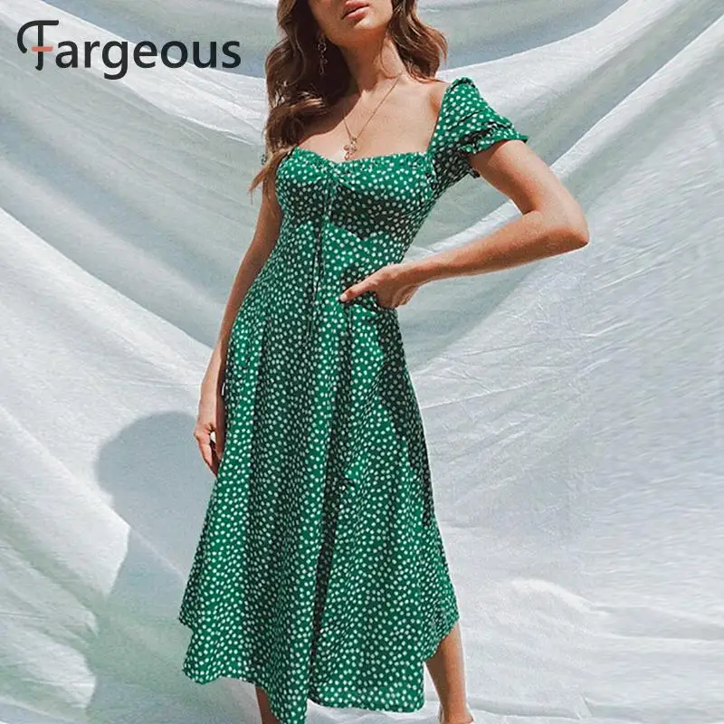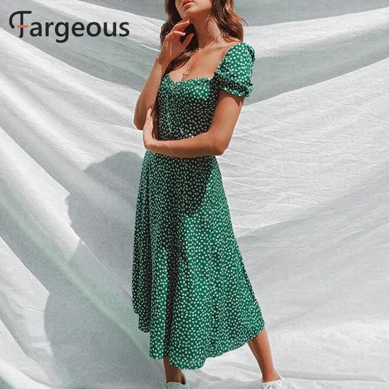 Special Offer Fargeous Strand Bohemian Zomer 2019 Vrouwen Jurk Vintage Party Elegante Vrouwelijke Jurk Midi Ruche Groen Jurken Vestidos Discount 43% Today!