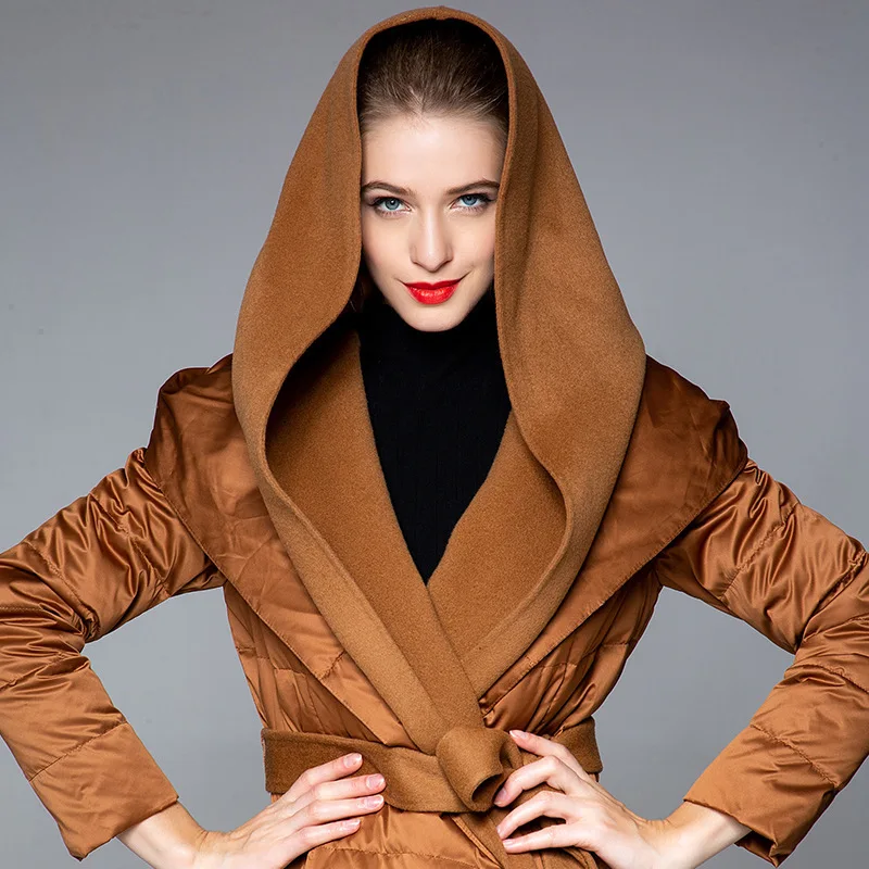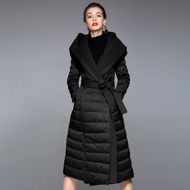Special Offer Winter slanke donsjack vrouw hooded lange witte eend donsjack verdikking dames verstelbare taille oversize down jas 20188004 Discount 50% Today!
