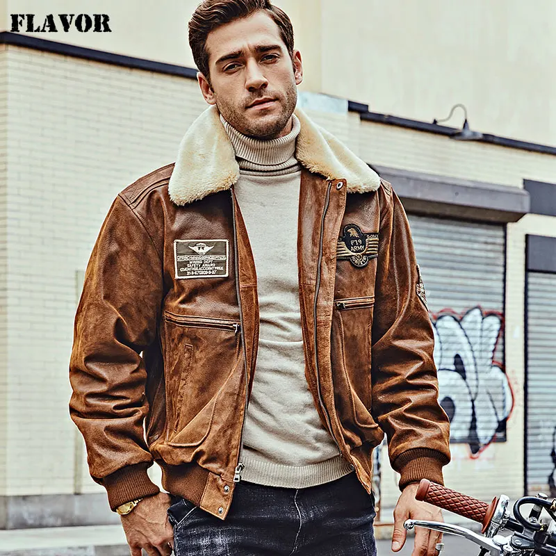 Special Offer Smaak Nieuwe Heren Real Leather Bomber Jacket Met Afneembare Bontkraag Echt Leer Varkensleer Jassen Winter Warme Jas Mannen Discount 63% Today!
