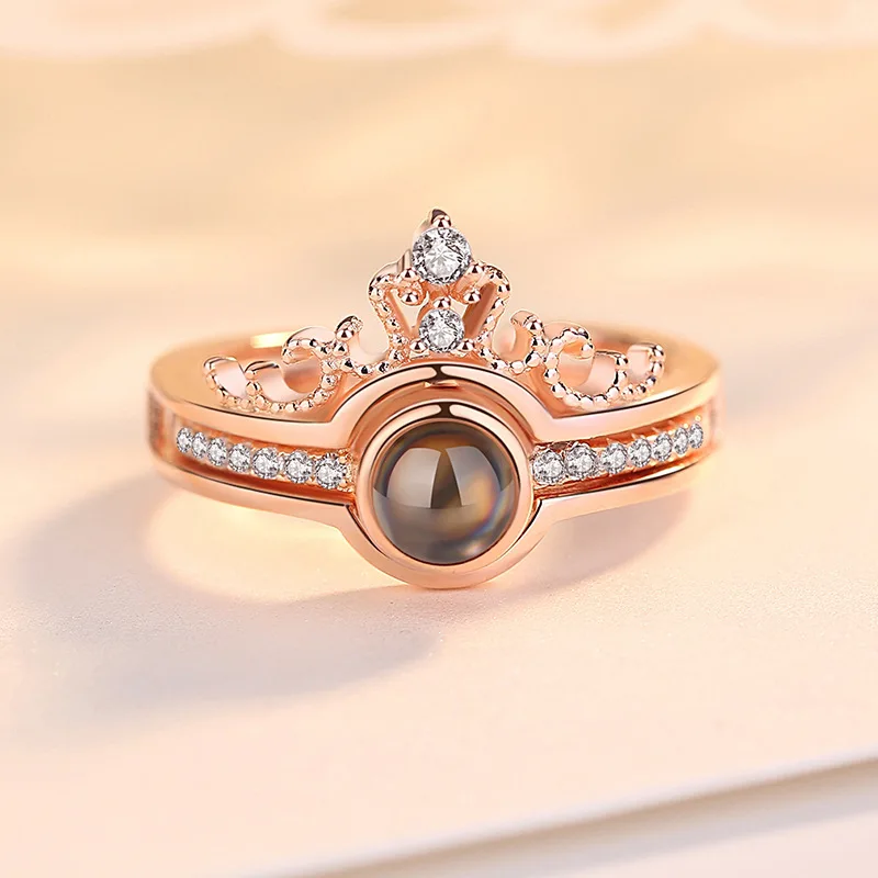 Special Offer Rose Goud 100 Talen \"I Love U\" Geheugen Crown Paar Ringen Nieuwe Engagement Wedding Ring Set 925 Sterling zilveren Vrouwen Sieraden Discount 0% Today!