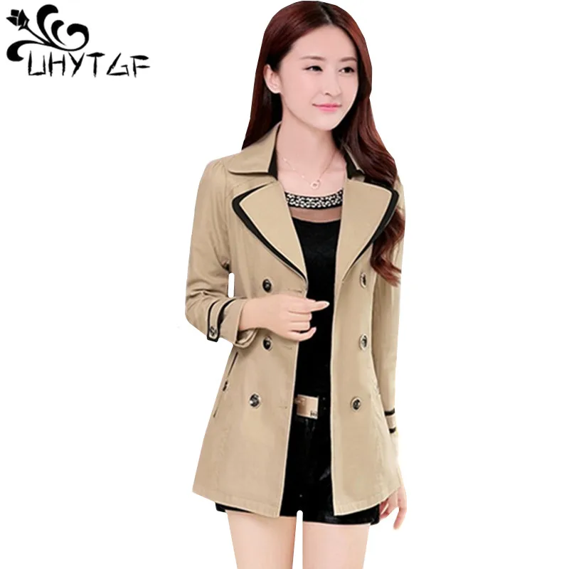 Special Offer UHYTGF M 3XL Casual Korte Jas Vrouwen Mode Dunne Lente Herfst Windjack Jas Riem Double Breasted Slanke Vrouwelijke Jas 1152 Discount 33% Today!