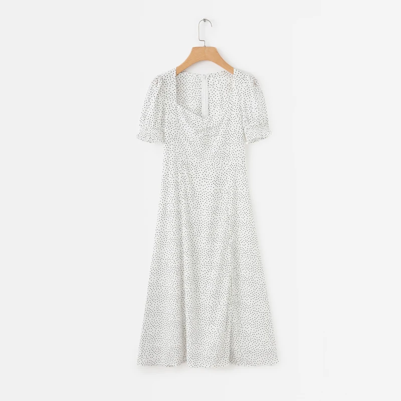 Special Offer 2019 Zomer Vintage Party Dress Vierkante Kraag Ruches Elegante Sexy Jurk Vrouwelijke Witte Dot Gedrukt Mid Jurken Vestidos Discount 35% Today!