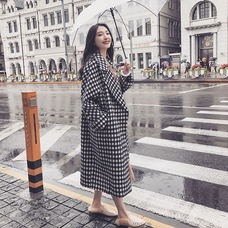 Special Offer Elegante Lange Jas Vrouwelijke 2019 Nieuwe Koreaanse Versie van de Lange Sectie Grote Maat Over de Knie Plaid Wollen Jas CHUQING Merk Discount 50% Today!