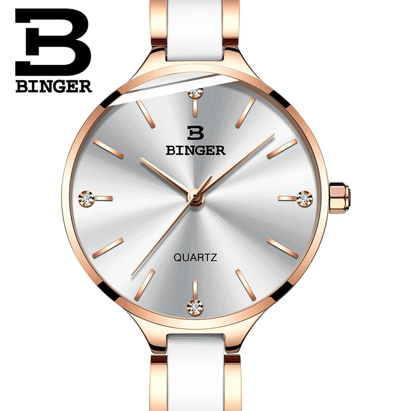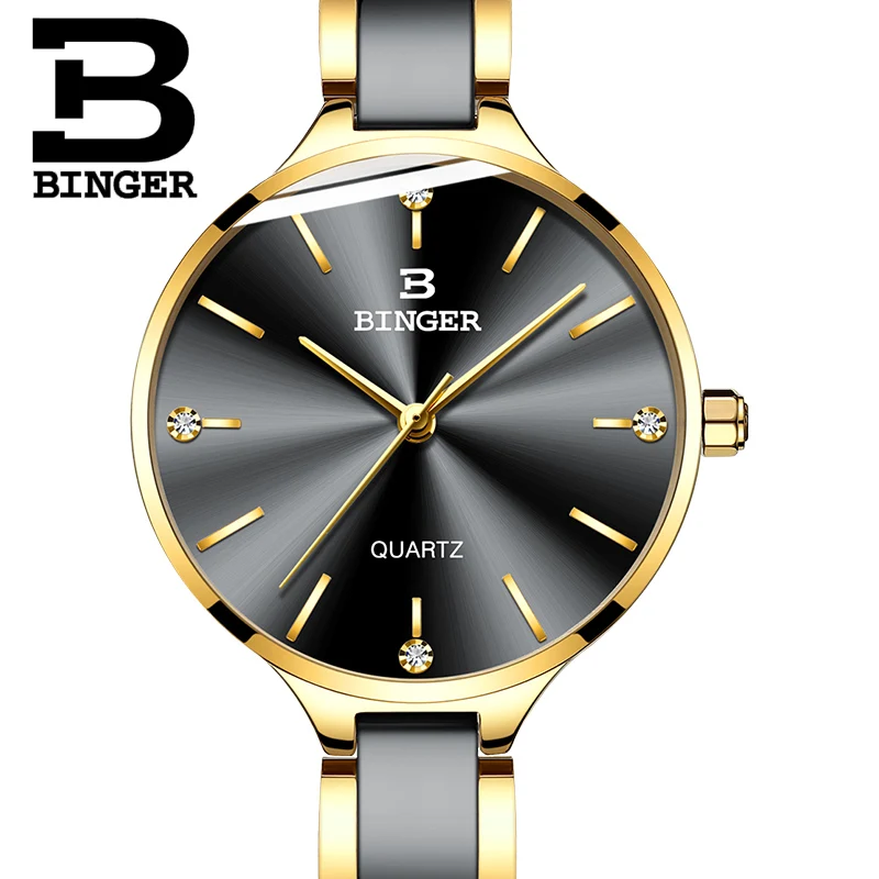 Special Offer Echt Zwitserland BINGER Merk Vrouwen quartz horloge staal slanke band met keramische mode toevallige waterdichte vrouwelijke jurk tafels Discount 0% Today!
