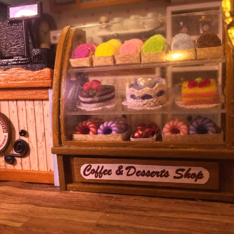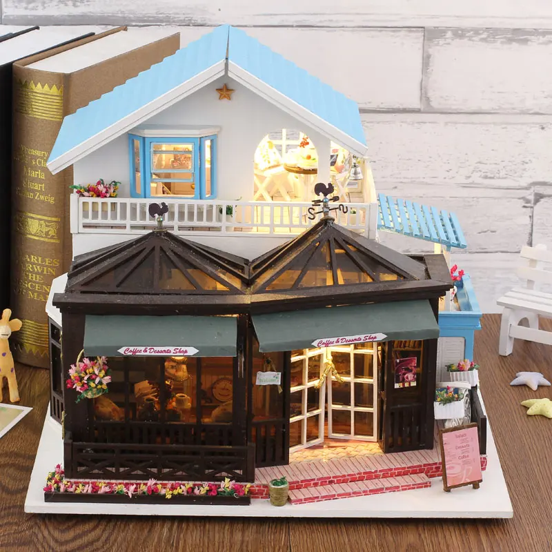 Special Offer IiE Creëren Poppenhuis Diy Houten Poppenhuis Mode Koffie Winkel Winkel Drie Lagen met Slaapkamer Miniatuur Meubels Speelgoed voor Meisje Discount 0% Today!