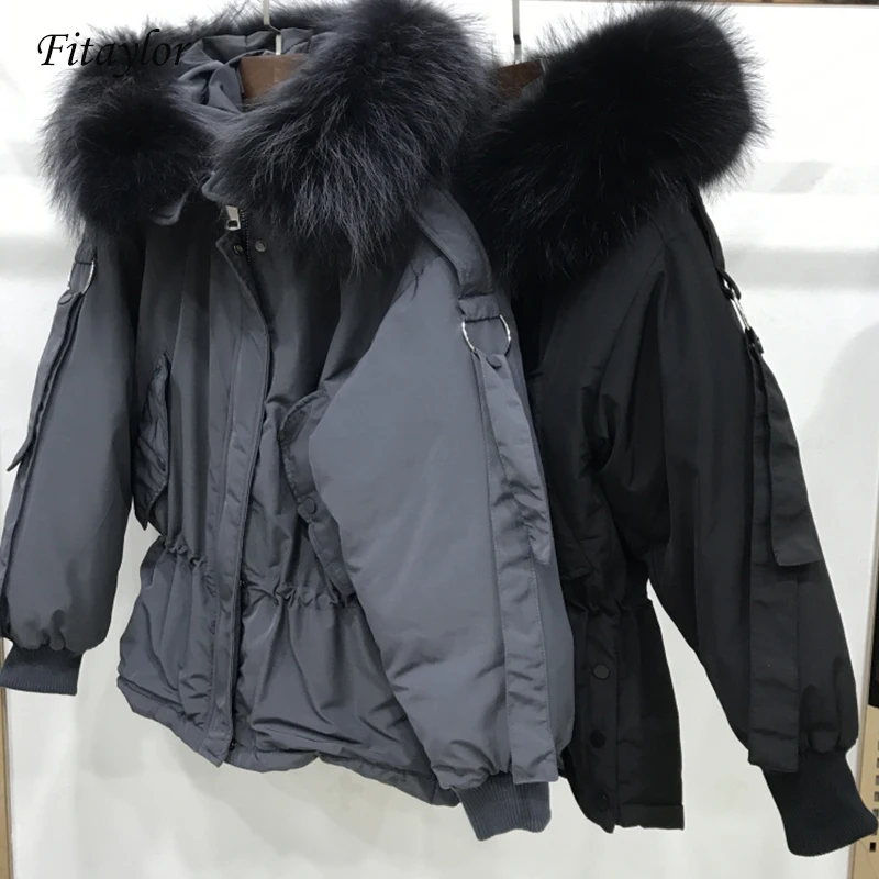 Special Offer Fitaylor Grote Echte Wasbeer Bont 2019 Vrouwen Winter Jacket Hooded Warm Vrouwelijke Witte Eend Donsjack Medium Lange Parka Losse jas Discount 35% Today!