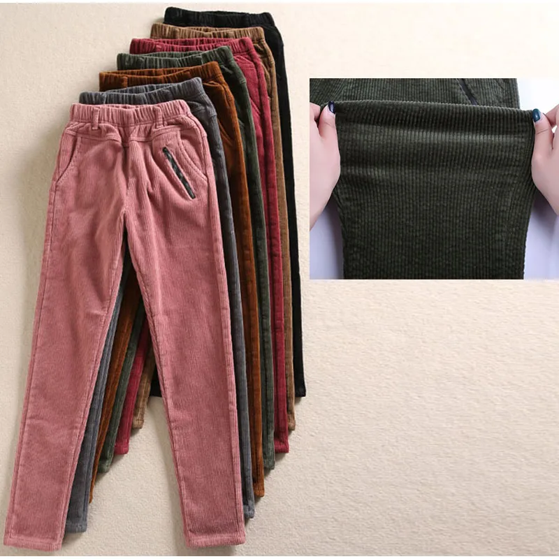 Special Offer Plus Size Elastische Taille Corduroy Potlood Broek 3Xl 4Xl Roze Koffie Wijn Rood Winter Skinny Casual Broek Hip Broek Met fleece Discount 40% Today!