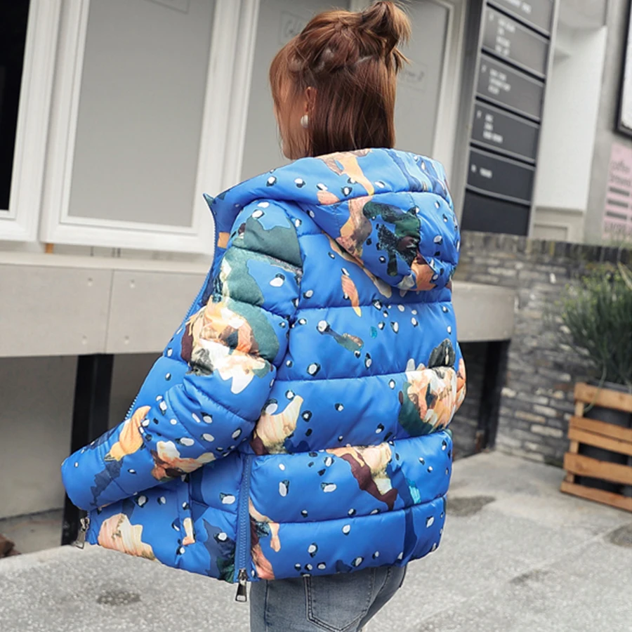 Special Offer Vintage Print Korte hooded Down Jassen Vrouwen Winter Casual Losse Dikke Jas Vrouwelijke Koreaanse Winddicht Katoen Jassen Plus Size Discount 44% Today!