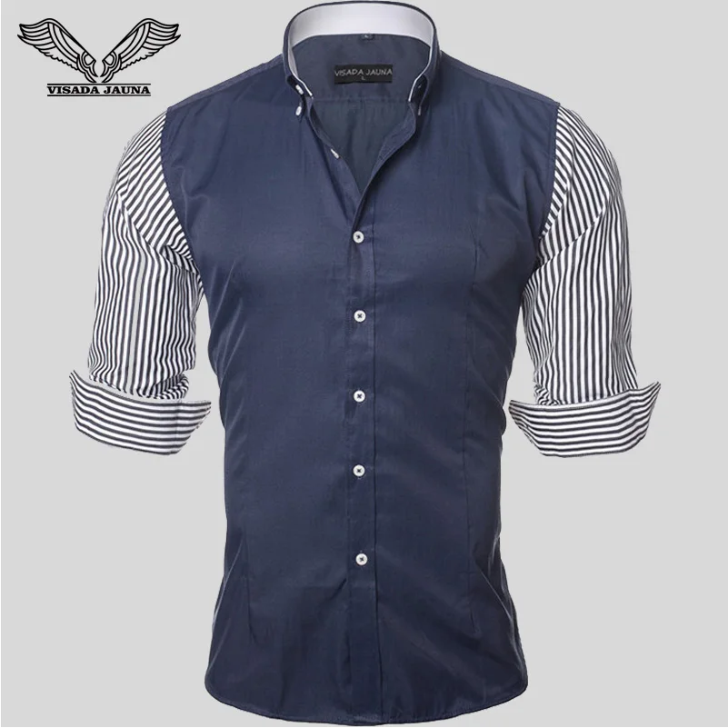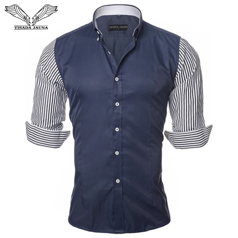Special Offer Visada Jauna Europese Size Mannen Shirt Fashion Heren Shirts Casual Slim Fit Gestreepte Lange Mouwen Katoen Camisa masculina N87 Discount 48% Today!