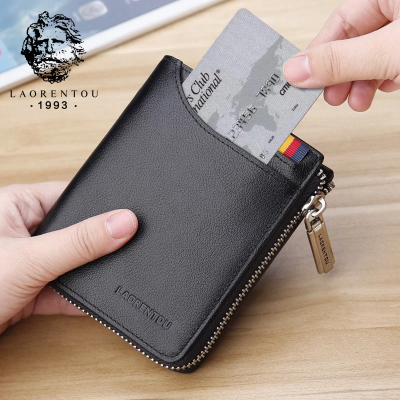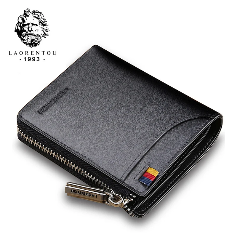 Special Offer LAORENTOU Portefeuilles Mannen Kaarthouder Man Echt Lederen Korte Portemonnee Portemonnee Rits Portefeuilles Casual Standaard Portefeuilles voor Mannelijke Discount 70% Today!