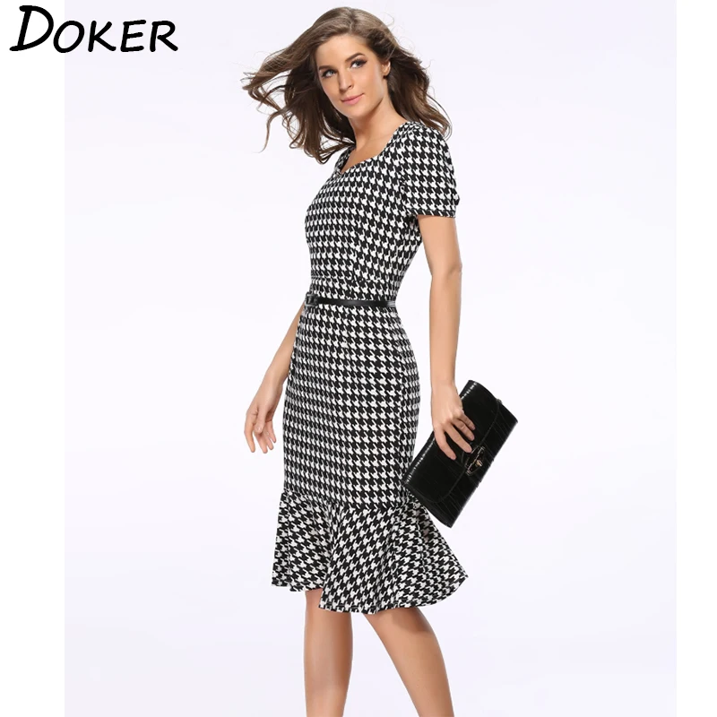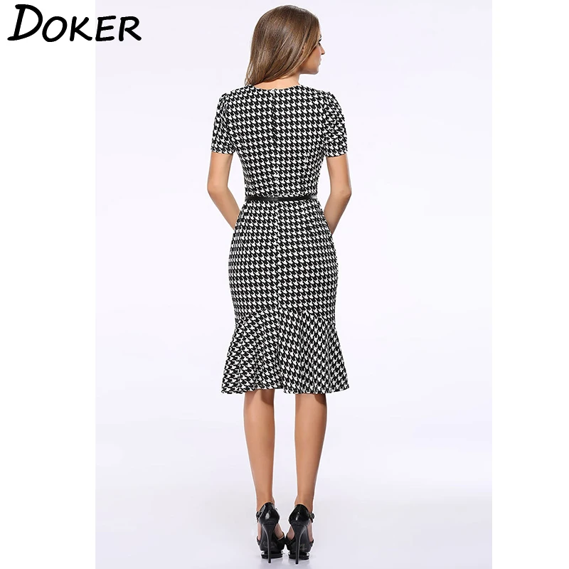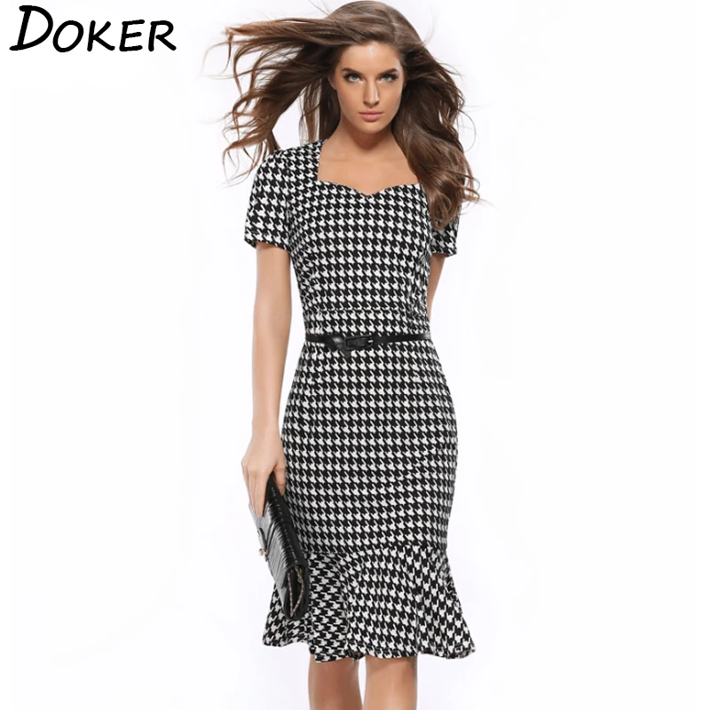 Special Offer Vrouwen Elegant Afslanken Jurk Zomer Houndstooth Werk Kantoor Jurk Dames Sexy Avond Party Mermaid Tuniek Bodycon Jurk Vestidos Discount 0% Today!