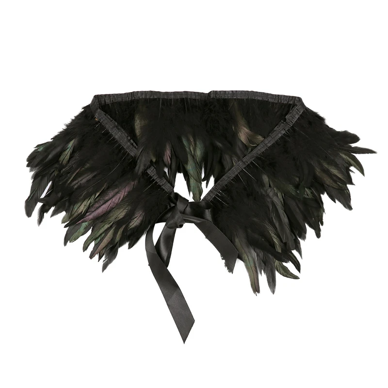 Special Offer YiZYiF Victoriaanse Real Natural Feather Bolero Shawl Schouder Wrap Cape Gothic Kraag met Lint Banden voor Cosplay Kostuum Party Discount 0% Today!
