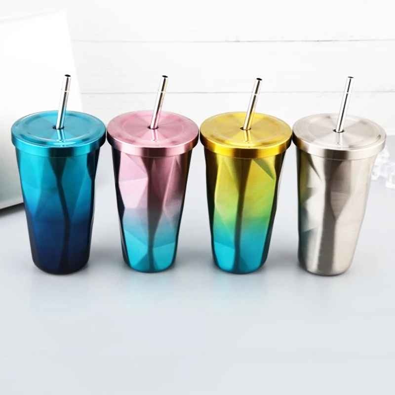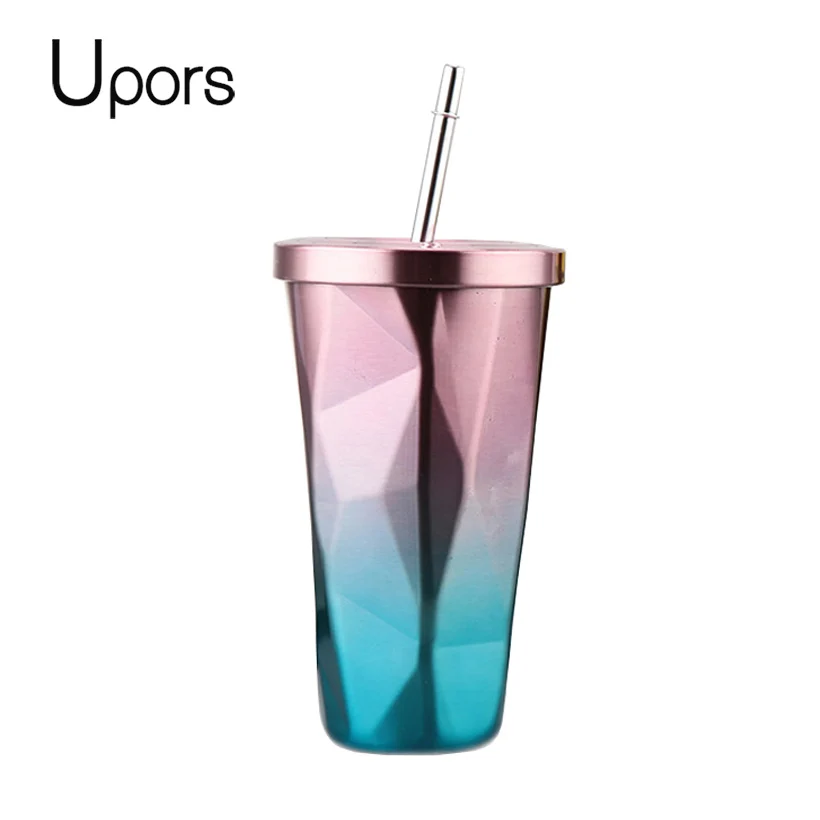 Special Offer UPORS 450 ml Koffie Mok Met Stro Dubbele Muur Roestvrij Staal Koffie Cups Tumbler Thermosflessen Reizen Koffiemokken Kopjes Discount 30% Today!