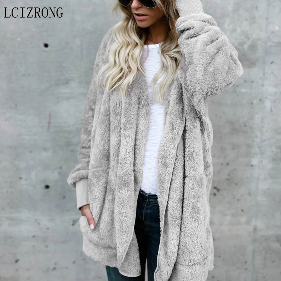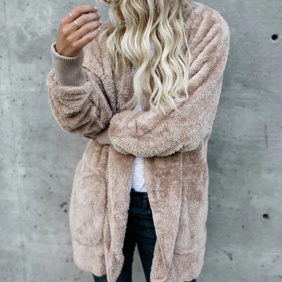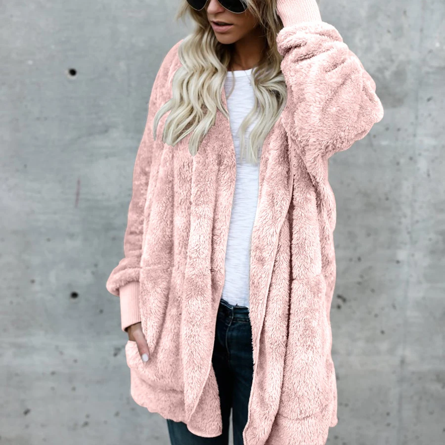 Special Offer Herfst Hooded Open Stitch Faux Bontjas Vrouwen Solid Plus Size Teddy Jas Winter Lange Mouw Roze Mode Slanke Bont jas Vrouwelijke Discount 42% Today!
