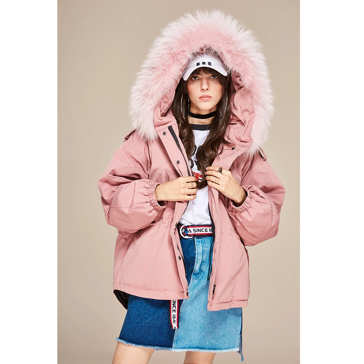 Special Offer JAZZEVAR 2019 Nieuwe winter Vrouwen donsjack oversize Zwaluwstaart 90% witte eend down jas grote echte wasbeer bont Capuchon Parka Discount 48% Today!