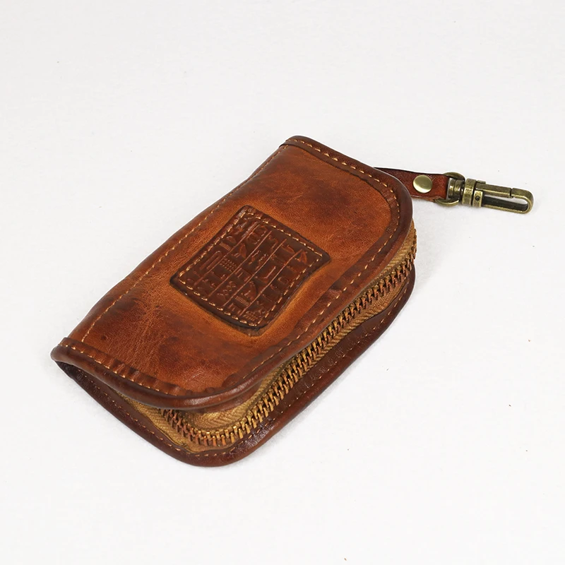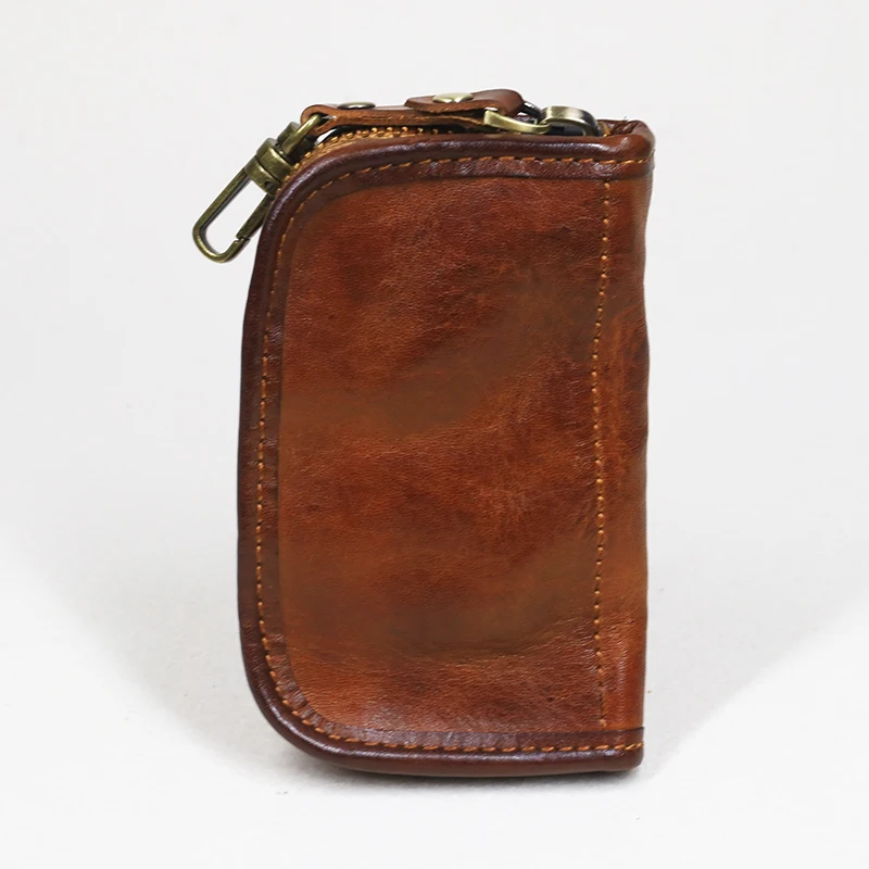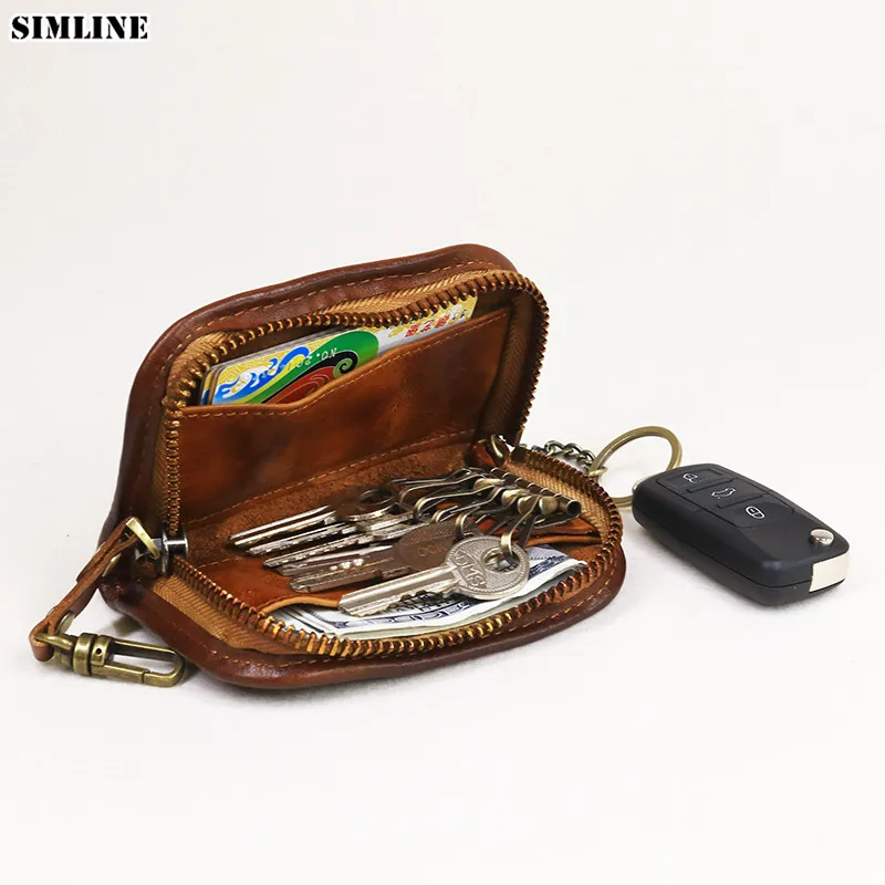 Special Offer Echte Koe Lederen Sleutel Portemonnee Mannen Vrouwen Mannelijke Korte Vintage Handgemaakte Rits Autosleutel Kaarthouder Portemonnee Organizer Huishoudster Discount 7% Today!