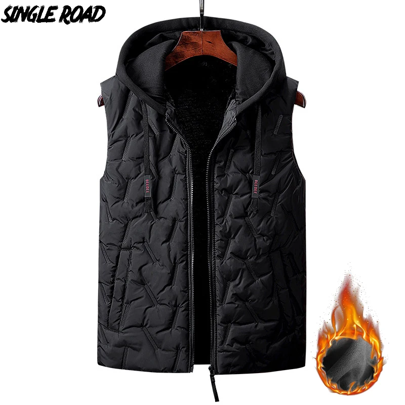 Special Offer SingleRoad Winter Fleece Vest Mannen Hoge Kwaliteit Mouwloze Jas Mannelijke Hooded Jas Heren Katoen Gewatteerde Vest Winddicht Bodywarmer Discount 25% Today!