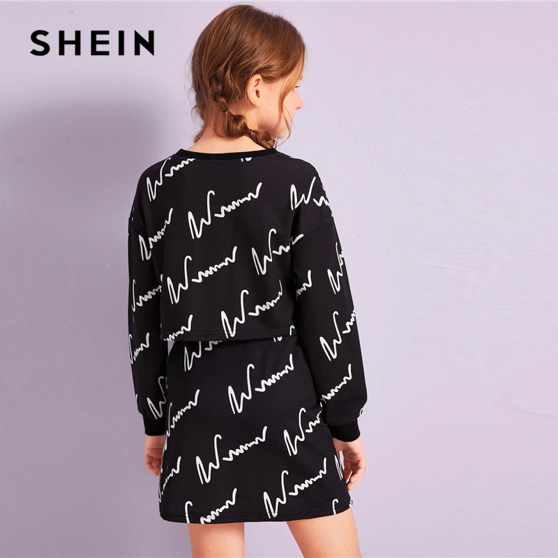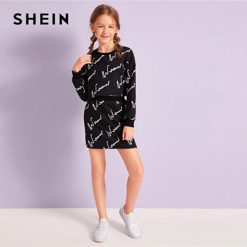 Special Offer Shein Kiddie Meisjes Grafische Print Sweatshirt En Rok Tweedelige Sets Kids Sets 2019 Herfst Lange Mouw Casual Outfits Discount 40% Today!