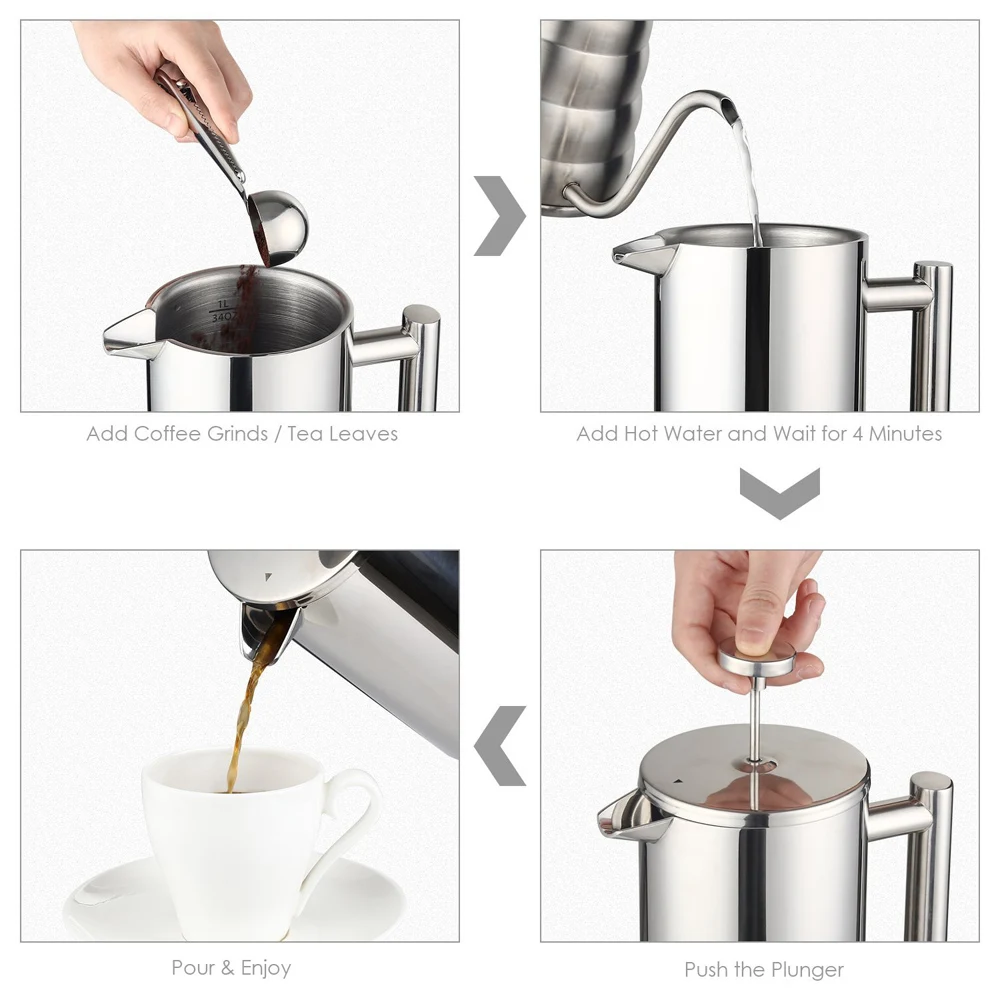 Special Offer 350 ml Rvs Dubbele Muur Geïsoleerde Koffie Thee Maker Franse Pers Percolators Met Filter Discount 40% Today!