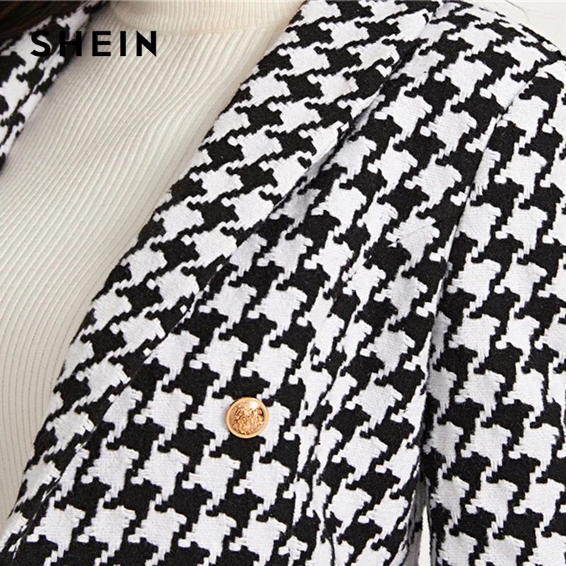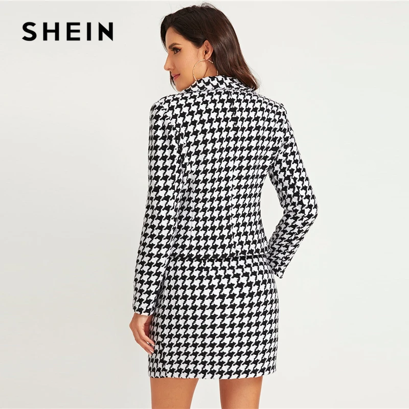 Special Offer SHEIN Zwarte En Witte Sjaal Kraag Houndstooth Print Blazer En Bodycon Rok Elegante Set 2019 Herfst Dames Dichtgeknoopt Pak Sets Discount 45% Today!